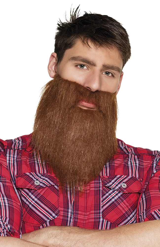 Bruine lange baard die leuk is voor een hipster, maar natuurlijk ook voor elk ander personage die een lange bruine baard en snor kan gebruiken. Deze baard doe je om door middel van twee stevige elastieken die over je achterhoofd lopen.