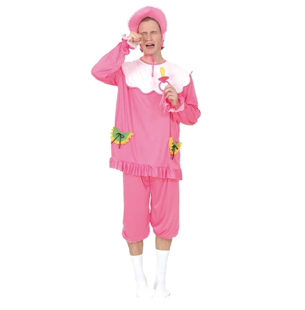 Leuk pak waarmee je weer teruggaat naar de babytijd. Leuk voor bijvoorbeeld een vrijgezellenfeest. Het baby kostuum is één maat, M/L. Ongeveer herenmaat 50/52.