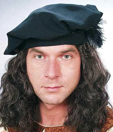 Zwarte Rembrandt baret van goede kwaliteit met veer! Voor een middeleeuwse schilder of dichter.