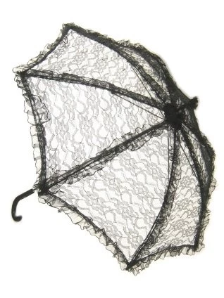 Zwarte kanten paraplu uit de biedermeier periode. Het scherm is 65cm doorsnee als je hem open klapt. Dit parapluutje is ook heel leuk te gebruiken voor een rococo outfit, of voor een gothic look, of zelf voor de Japanse Harajuku meisjes.