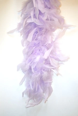 Deze luxe boa is gemaakt van echte veren en is een luxe kwaliteit. Het gewicht van de boa is 80 gram, dat in tegenstelling tot vele boa’s op de markt, die maar 50 gram bevatten. Let dus goed op bij het maken van uw keuze. De lengte is ongeveer 1,8 meter lang (kan een paar centimeter schelen) dus altijd lang genoeg om ruim te dragen of om te slaan. Let op ! Boa’s zijn altijd moeilijk brandbaar gemaakt, maar toch moet men voorzichtig zijn met open vuur. Kleur is mooi zacht lila.