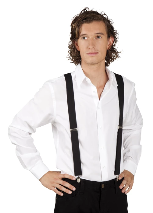 Zwarte bretels. Elastisch en verstelbaar. Kan met clipjes aan je broek vastgemaakt worden.