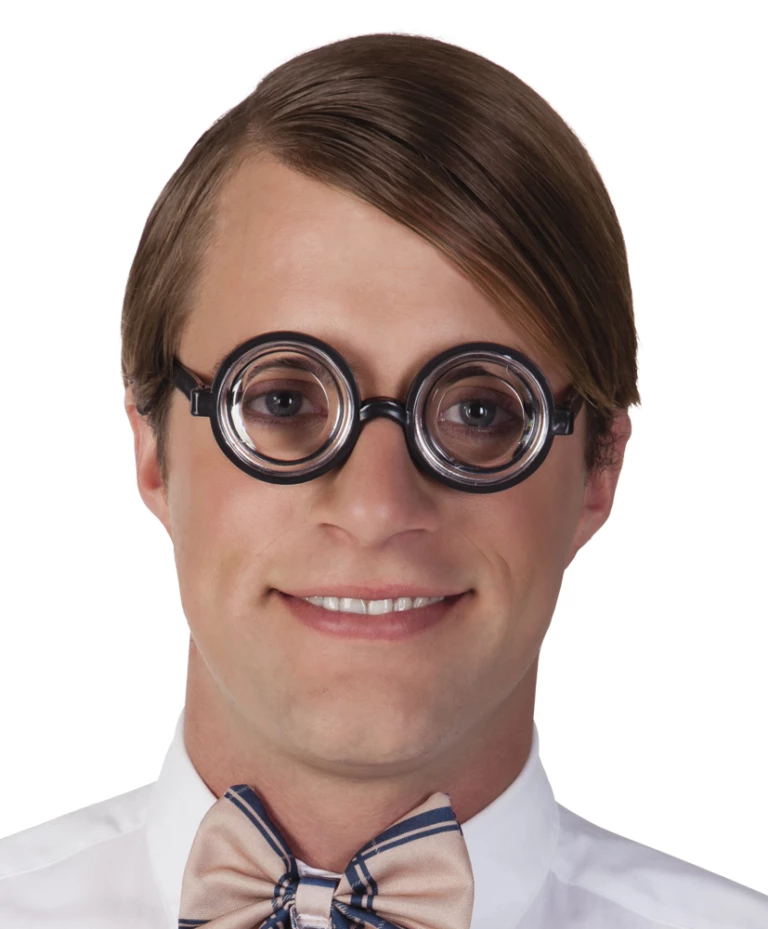 Het lijkt alsof je kortzichtig bent met deze bril met jampotglazen. Het verkleint ook je oogopslag, maar je kunt er redelijk goed doorheen kijken.