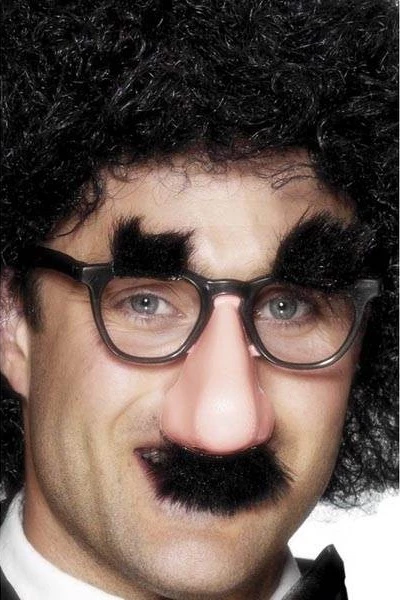 De ideale vermomming! Een flinke neus met bril, wenkbrauwen en snor. Een gouwe ouwe!