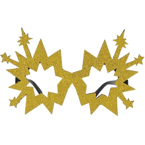 Een leuke gouden bril om het jaar mee af te sluiten. Zonder glas, maar wel met heel veel glitter.