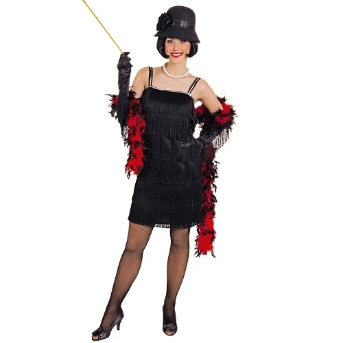 Prachtige flapper jurk met die bekende franjes die zo mooi mee bewegen als je de Charleston dans doet. Dit jurkje is prachtig als je naar een roaring twenties, charleston, great Gatsby of peaky blinders feest gaat. Licht elastisch, afgewerkt met zilveren pailletten op de spaghetti bandjes en de bovenrand en verkrijgbaar in verschillende maten. (Exclusief accessoires)