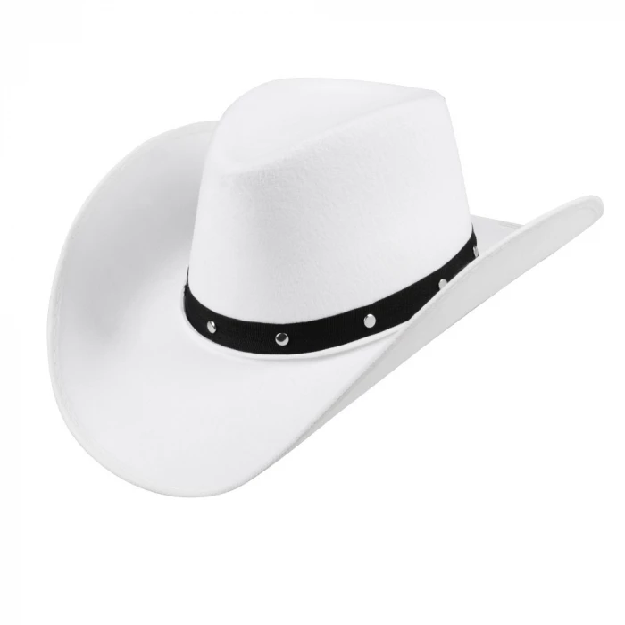 Mooie witte cowboyhoed met een zwart bandje. Te gek voor elk cowboyfeest.