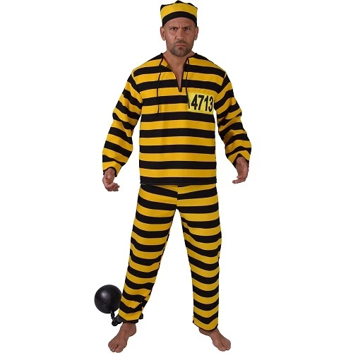 Het bekende geel zwart gestreepte boevenpak van de Daltons uit het stripverhaal Lucky Luke. Bestaande uit een jas, broek en petje en verkrijgbaar in verschillende maten.