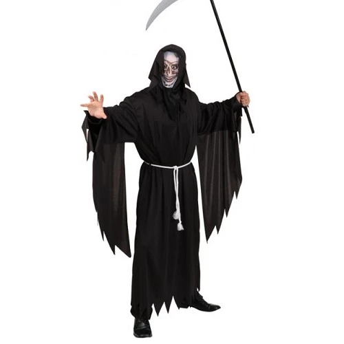 Zwart gewaad voor de dood of voor scream. Inclusief capuchon en koord voor om je middel. Dit Grim reaper pak is one size, ongeveer heren maat Large.