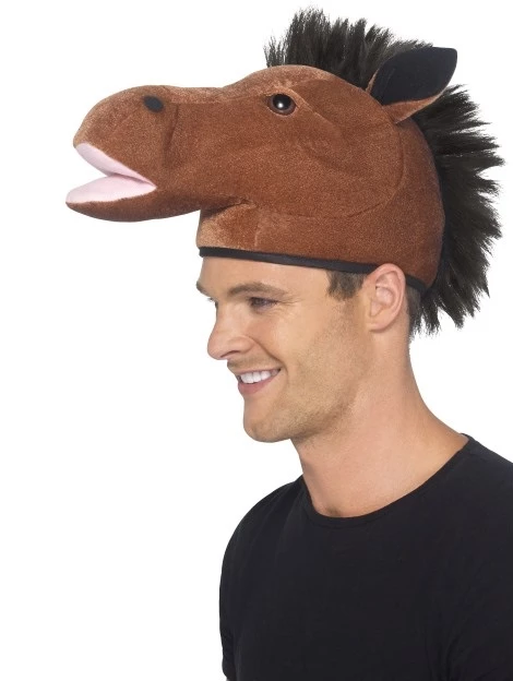 Grappige hoed met een paardenkop, sorry… paardenhoofd. One size.