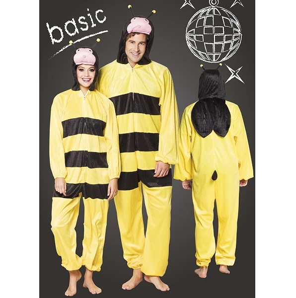 Leuk bijen pak met een capuchon met dierenkop. Oftewel een onesie! Met een lange rits aan de voorkant van het pak. Alleen verkrijgbaar in maat XL, passend voor alle maten tot een lengte van 1.95m.