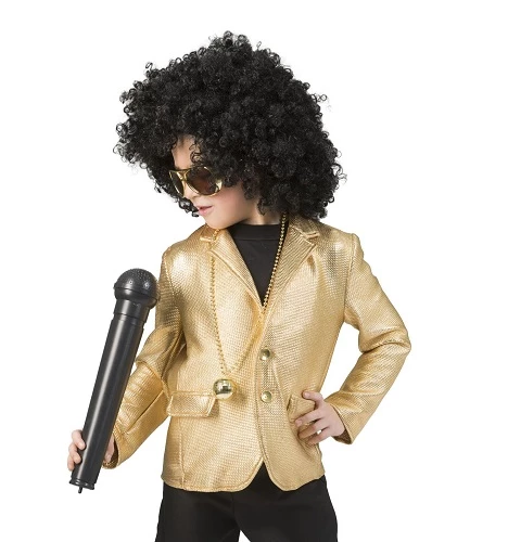 Lekker fout gouden jasje voor kinderen. Te gek voor een disco feestje of voor een gekke showmaster. Verkrijgbaar in verschillende kindermaten.