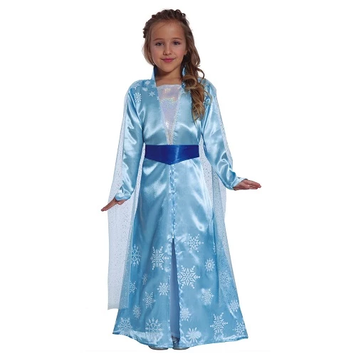 Mooie lange blauwe ijsprinses jurk die eruit ziet als de Elsa jurk uit Frozen 2. Het Elsa kostuum bestaat uit een niet elastische jurk en een losse riem en is verkrijgbaar in drie kindermaten: