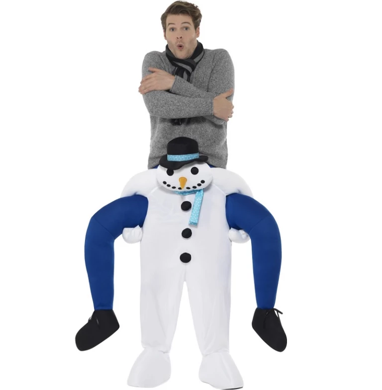 Vele namen zijn er in omloop voor deze te gekke pakken, piggyback snowman kostuum, op de rug van de sneeuwpop kostuum, man op rug van sneeuwman kostuum. Hoe je het pak ook noemt. Het is super grappig. One size, past altijd.