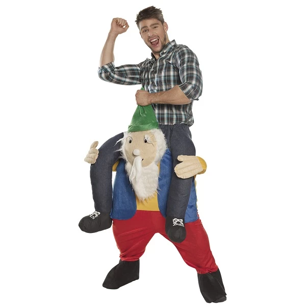 Vele namen zijn er in omloop voor deze te gekke pakken, piggyback gnome kostuum, op de rug van een kabouter kostuum, man op rug van kabouter kostuum, carry me gnome. Hoe je het pak ook noemt. Het is super grappig. One size, past altijd.