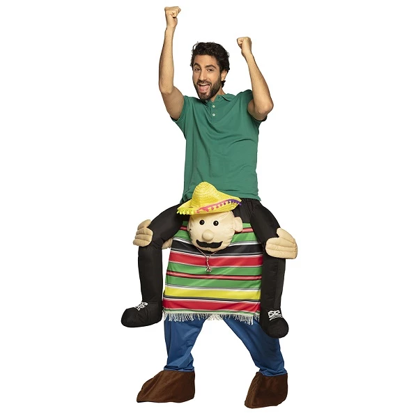 Vele namen zijn er in omloop voor deze te gekke pakken, piggyback mexican kostuum, op de rug van een Mexicaan kostuum, man op rug van Mexicaan kostuum, carry me Mexican. Hoe je het pak ook noemt. Het is super grappig. One size, past altijd.