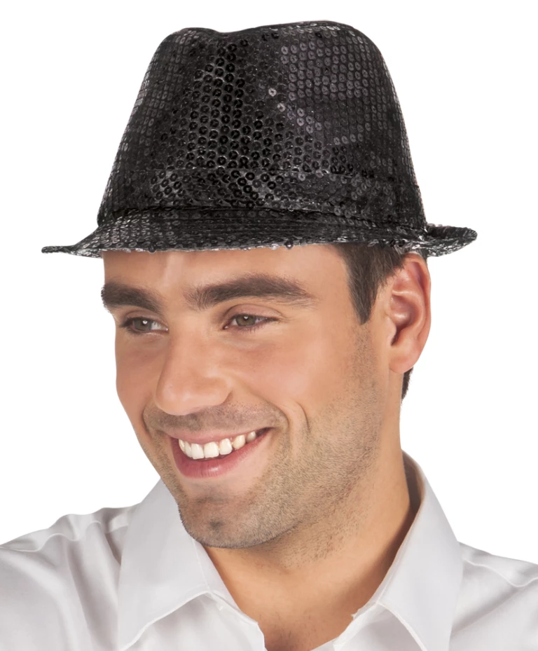 Deze populaire discohoed is helemaal bestikt met pailletten. Dit is ook een hoedje dat bij iedereen leuk staat. Of je nu kind of volwassene bent, ieder disco feest wordt een succes met dit pailletten hoedje. Dit model hoed wordt ook wel een trilby, fedora, maffia of gangsterhoedje genoemd.