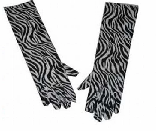 Lang paar handschoenen met een zebra print. Leuk voor op safari.