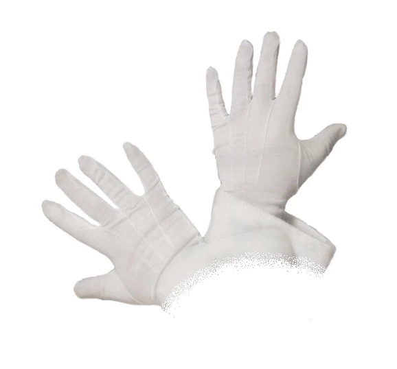 Mooie witte katoenen handschoenen in maat Extra Small, Small, Medium, Large of Extra large. Te gebruiken voor verschillende doeleinden zoals in restaurants, boekenwinkel, antiek winkels, goochelaars, Sinterklaas, mimespelers en ga zo maar door. Verkrijgbaar in verschillende maten.