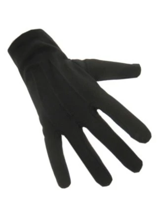 Korte katoenen zwarte handschoenen. Mooie kwaliteit. Te gebruiken voor verschillende doeleinden zoals in restaurants, boekenwinkels, antiek winkels, voor goochelaars, Piet, mimespelers en ga zo maar door. Verkrijgbaar in verschillende maten.