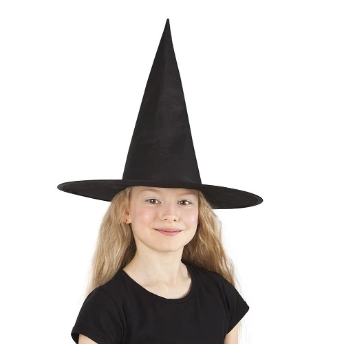 Prima heksenhoed voor kinderen. Zwart en met niet teveel poespas, waardoor hij perfect is om tijdens een partijtje zelf te versieren bijvoorbeeld.