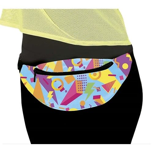 Te gek 80ties heuptasje of buiktasje om te doen door middel van een verstelbare riem met clip systeem. Aan de voorkant van het tasje zit een ritsje. Leuk accessoir bij je jaren 80outfit of trainingspak.