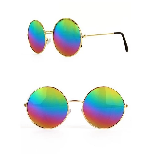 Hoe cool is deze bril! een echte hippie bril met spiegelend glas. Gaaf voor een sixties of seventies feest, maar ook in de jaren 90 waren deze ronde brilletjes helemaal in bij de gabbers! De glazen zijn iets groter dan bij onze gewone uilenbrillen, namelijk 5,5cm doorsnee.