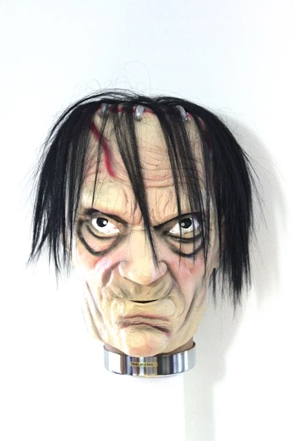 Mooi rubbermasker met de echte kop van Frankenstein. Voorzien van echt haar en een brede schedel.