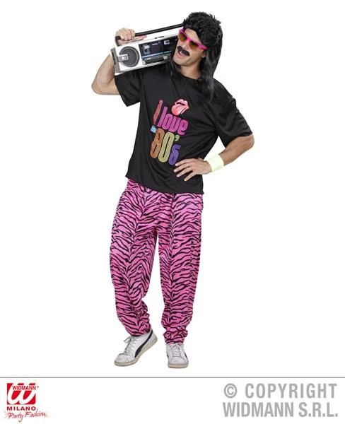 Geweldige set van een broek en een T-shirt voor een man. Beide gemaakt van elastisch materiaal en zit werkelijk als een pyama. Hiermee maakt u helemaal de blits op een jaren 80 feest.