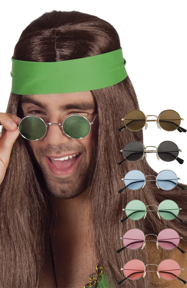 Leuk hippie brilletje dat iedereen wel kent in het roze van John Lennon. Metalen montuur met plastic glazen. Wordt ook wel een uilenbril genoemd.