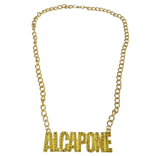 Foute gouden ketting met een hanger met de tekst AL CAPONE. Leuk voor een ganster jaren 20 feestje, maar ook leuk voor een fout feest.