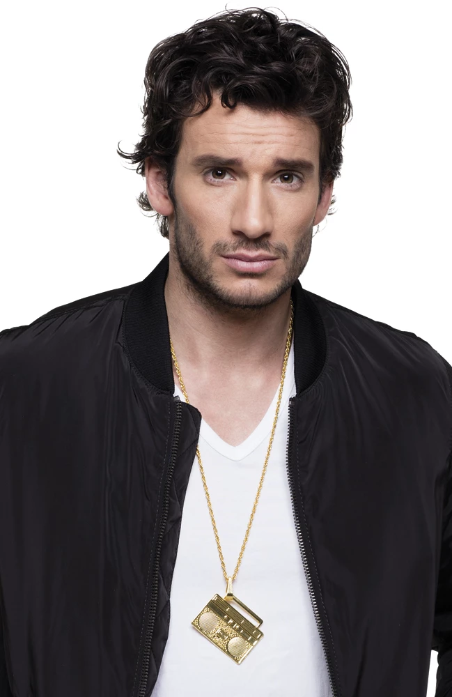 Toffe gouden pooier ketting voor bijvoorbeeld een 80ties feestje. Aan de ketting hangt een hanger van een getto blaster.