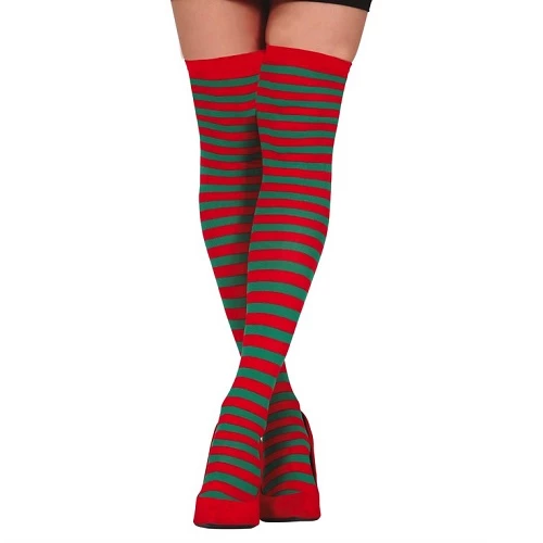 Leuke groen en rood gestreepte kousen voor onder een elfen jurkje. De kousen zijn one size, past bij elke gemiddelde maat.