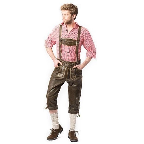Echte originele leren Tiroler broek. In het glad leer met een retro look. Deze Oktoberfest broek is gemaakt van luxe kwaliteit leer en met mooie stiksels afgewerkt. Gewoon zoals de echte Beyern Munchen bewoners erbij lopen tijdens de Oktoberfest bierfeesten. Verkrijgbaar in verschillende maten.