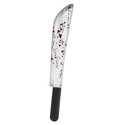 Een slagersmes, of kapmes wordt in veel Amerikaanse horror films een machete genoemd. Dit is een mooi exemplaar met bloed. Te gek voor Jason of een ander bekend horror film figuur. 53cm lang.