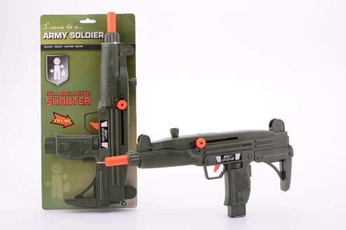 In leger kleur uitgevoerde mitrailleur of machinegeweer. Met pullback systeem om het juiste geluid te imiteren.