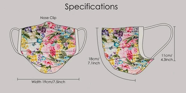 Mooi en prettig zittend mondkapje waar je in het openbaar leuk mee voor de dag komt. De binnenkant van het mondmasker is van katoen en de buitenkant van polyester. De elastieken bandjes voor achter je oren zijn verstelbaar zodat je de mondkap passend naar je eigen hoofd kunt maken. Met een metalen buigbaar randje voor een goede aansluiting op je neus. Verkrijgbaar in verschillende prints. Deze heeft een bijzonder vrolijke bloemen print.