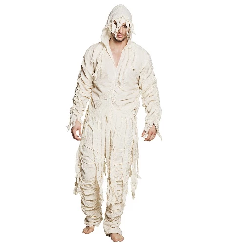 Echt een te gek en makkelijk Mummie pak voor Halloween of voor een Egyptisch feestje. Het Mummy kostuum bestaat uit een shirt met capuchon en een broek en beide zijn voorzien van lekker veel verband en rafels. Verkrijgbaar in verschillende maten.