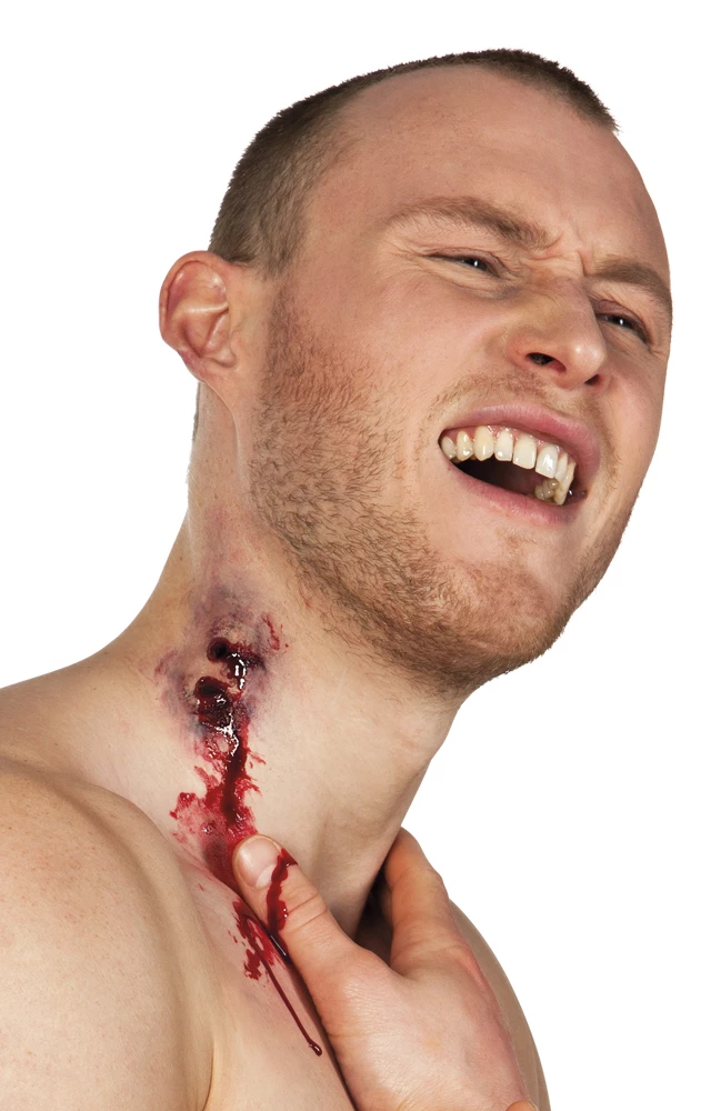 Mooie latex wond die je op elke gewenste plek van je lichaam kunt plakken. Let er alleen wel op dat je hem niet plakt op een plek waar je huid veel in beweging is. Dit omdat hij anders te snel loslaat en dat is zonde. Er zit een pakje met dubbelzijdige stickertjes bij de wond geleverd zodat je hem op kunt plakken. Wij raden echter wel aan om hem te plakken met huidlijm zodat hij lang en setvig blijft zitten. Werk de wond af met latex en wat bloed en je hebt een geweldige Halloween look.
