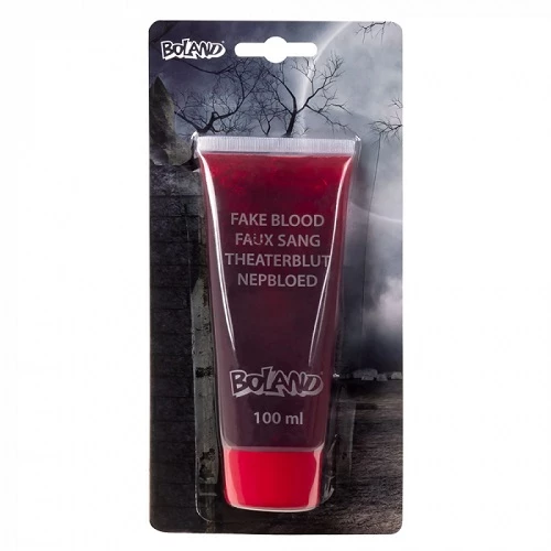 Een tube met 100ml stroperig nepbloed. Perfect om Halloween wonden nog enger te maken en voldoende om meerdere personen lekker onder te smeren. Niet uitwasbaar, dus kijk uit met kelding.