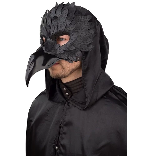 Een prachtig oogmasker van een raaf of kraai. Voorgevormd voor een goede pasvorm en afgewerkt met een zwarte snavel en zwarte nep veertjes. Om te doen door middel van een stevig elastiek.