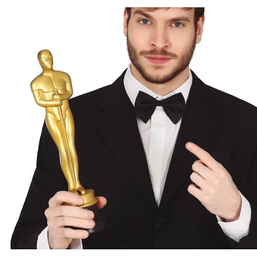 Prachtige plastic Oscar van 33cm groot. Goudkleurig met een zwart voetje.