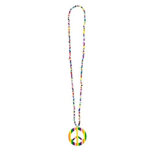 Leuke kralenketting met een peace teken hanger. Deze vrolijke hippie ketting mag niet ontbreken bij een goede 60ties flower power outfit.