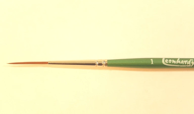 Dit is een zeer bijzondere penseel. Dit penseel wordt een sleper genoemd en is extra lang. Zo’n penseel is bedoeld om dunne lijnen in een strakke bocht of lijn te trekken. Met dit 20mm lange kunsthaar van dit penseel is het strakste bochtenwerk werk ooit te maken! Het penseeltje heeft een werkbreedte van 1 mm. Het vatting is van roestvrijstaal en de steel is van gelakt kunststof in het groen. Het merk is Leonhardy en staat dus voor kwaliteit. Een juweel van een penseel om “erbij ” te hebben.