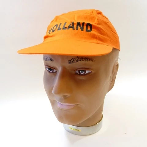 Eenvoudige oranje pet met opdruk holland. Simpel, maar goed.