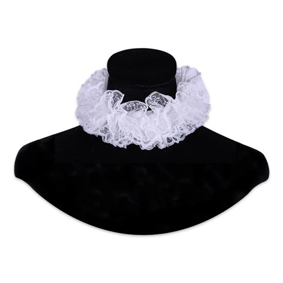 Prachtige korte kanten kraag die om te doen is door middel van een elastiek en een knoopje. Dit kraagje is werkelijk een plaatje en past bij veel fluwelen Pieten pakken.