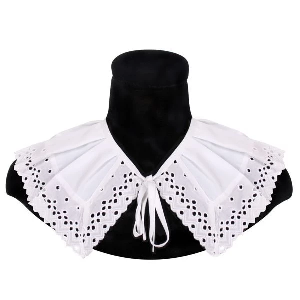 Chique Pieten kraag voor op de luxe pieten pakken. Met mooie vouwen en afgewerkt met een kanten randje. Wordt gestrikt in de nek. Goed wasbaar en op twee manieren te dragen, met de strik naar voren of naar achter.