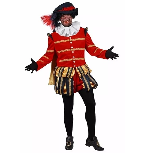 Super origineel pietenkostuum in een mooie polyester fluwelen kwaliteit met goudkleurige satijnen details en rijk bestikt met goudgalon, jas met afneembare (gevoerde) cape, broek met een elastieke taille en een baret. Het Piet kostuum is gemaakt van polyester fluweel en is zelf wasbaar op een handwas of wolwas van 30 graden.