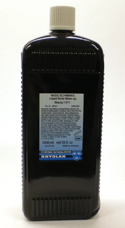 Deze echte zwarte schmink van Kryolan is vloeibaar en kan met een kwast, spons of zelfs een watje opgebracht worden. De basis is alcohol, dus deze schmink zit zeer vast. Uitstekend geschikt voor slecht weer en andere regenbuien. Veegvast en toch goed af te halen met de hydro afschmink olie. Goed voor 80-100 gezichten. Zie voor een uitgebreide collectie schmink onze afdeling grimeerartikelen. Verkrijgbaar in zwart, bruin 101 (de lichtere kleur), bruin 102 (de donkere kleur)