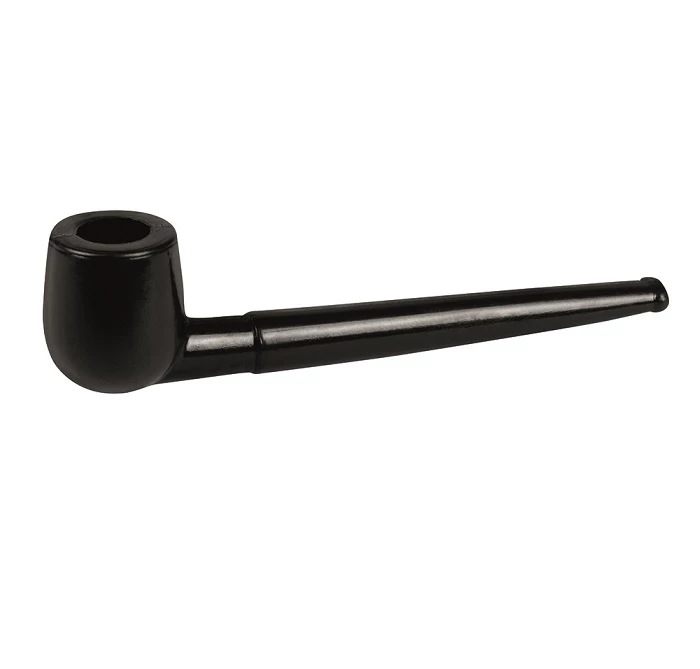 Plastic zwarte pijp van 15cm lang. Goed voor Popeye of een oud opaatje. Natuurlijk kan deze pijp ook als boeren pijp.
